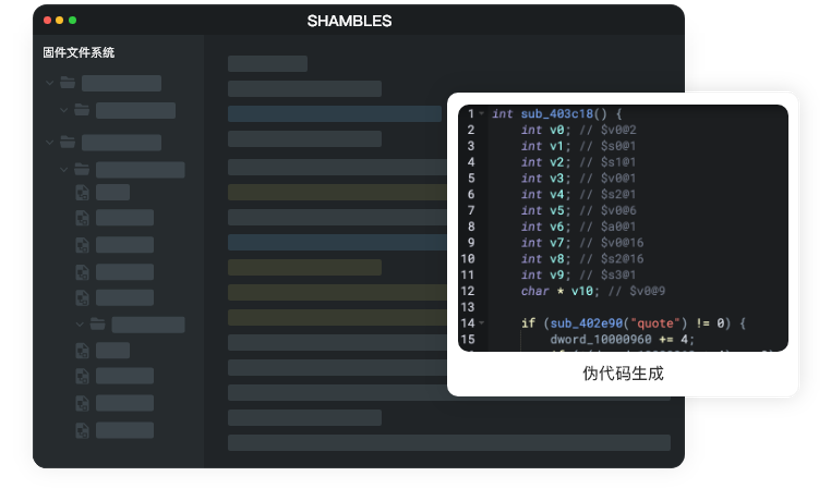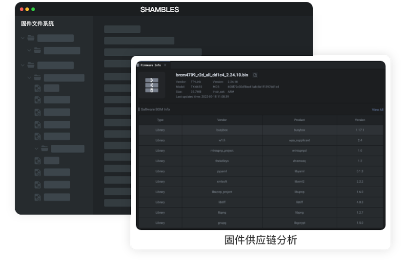 Shambles作为国内首个具有革命性的安全效率工具,结合shambles cloud对大量的固件进行自动化、超精准的彻底分析,使得用户在针对嵌入式设备固件进行分析时,大大减少了人手繁琐的操作以及大量重复性的工作。作为针对嵌入式领域的逆向工程精准分析平台,Shambles在静态和动态分析、中间表示、符号执行、仿真和模糊处理方面拥有颠覆性的核心技术,为嵌入式系统和物联网安全评估提供了各种独有的功能。同时,通过Shambles的定制化功能,可为高级用户执行更有针对性的评估。